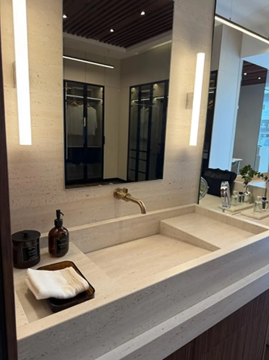 Las placas ABKSTONE están diseñadas para resistir el contacto con el agua sin riesgo de mancharse.